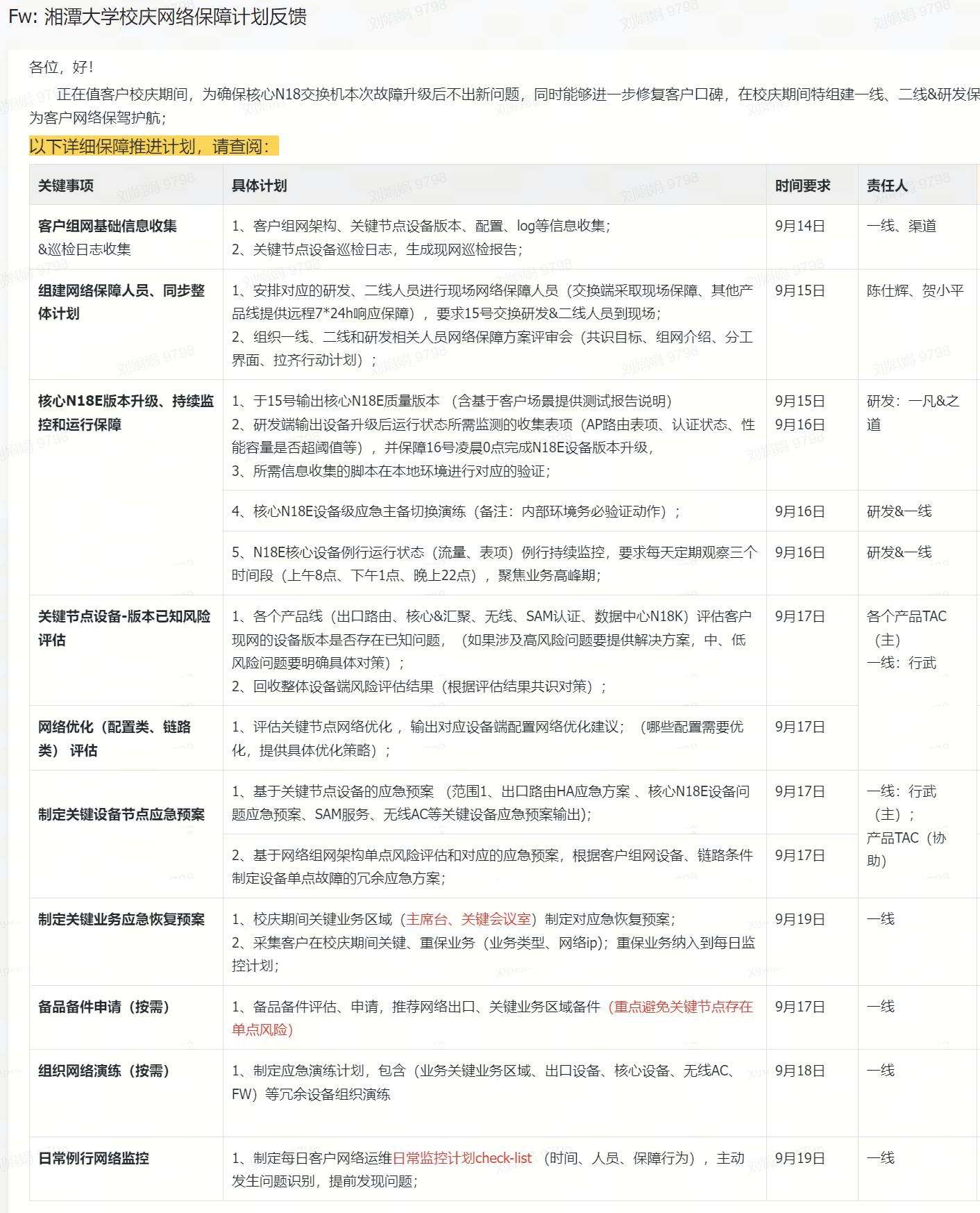 - 针对关键设备组建专属服务团队,确保故障快速定位和业务及时恢复。