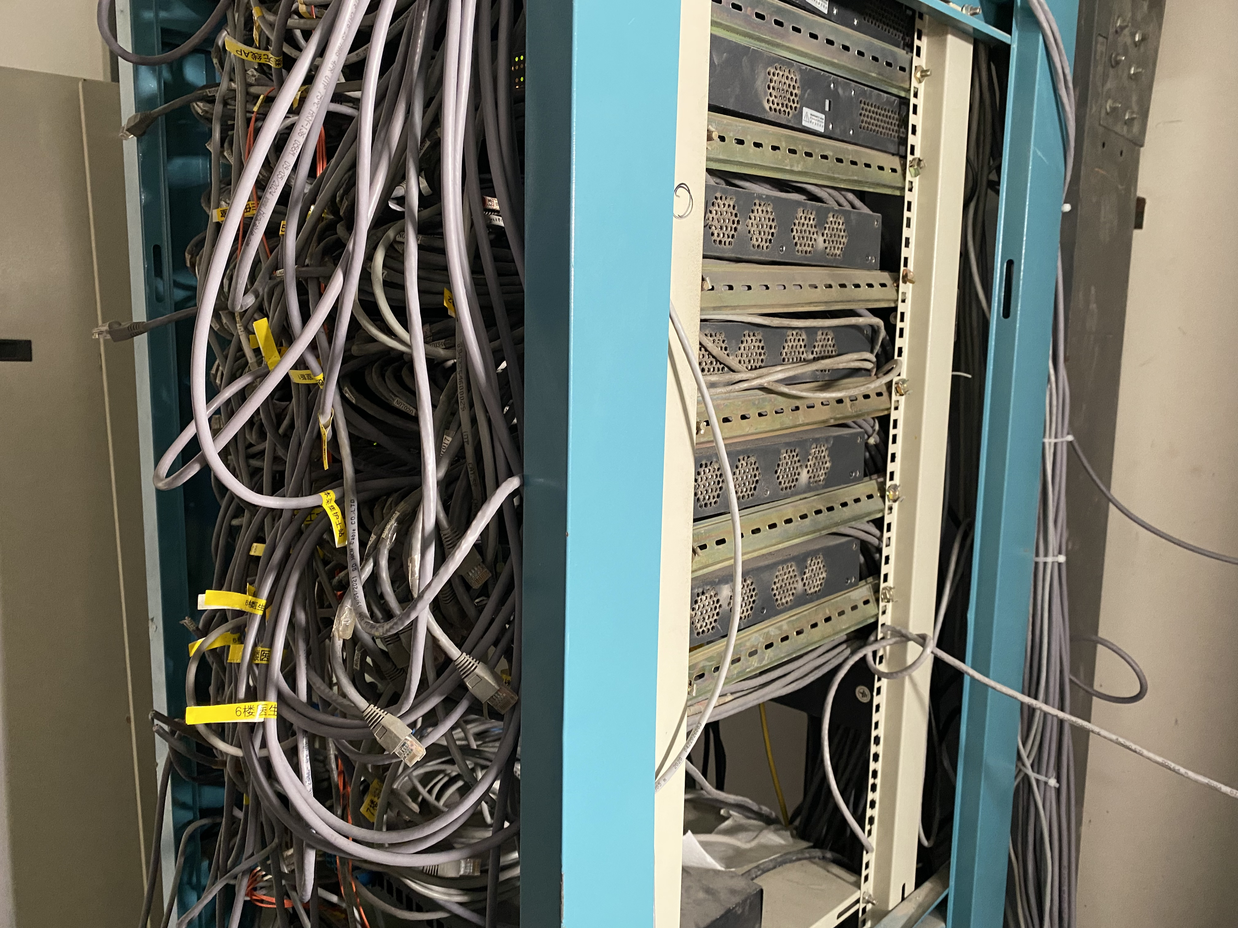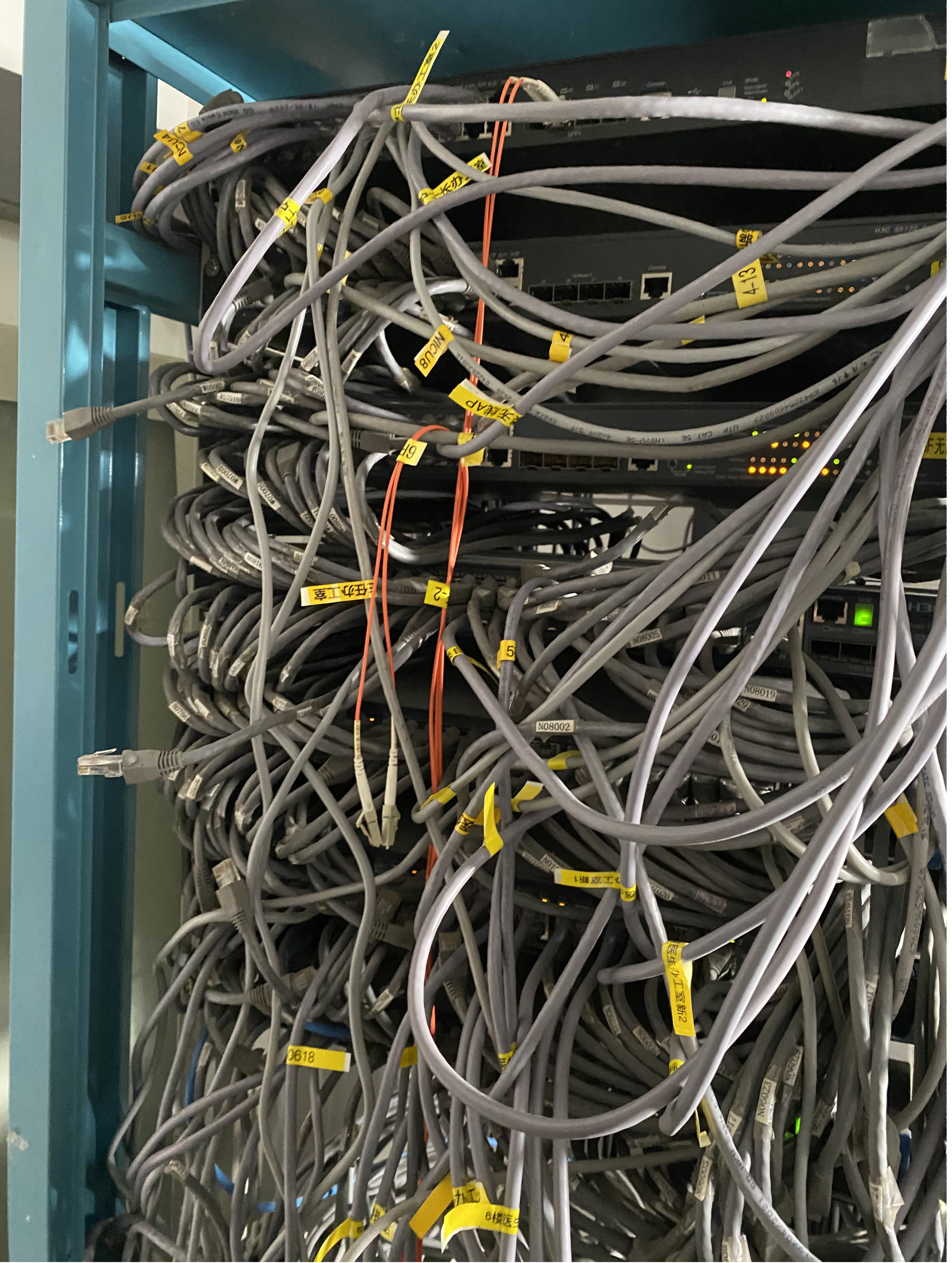 走进第二住院大楼和紫荆楼的弱电井,仿佛踏入了一座“线缆迷宫”:桥架内网线盘根错节,老旧交换机堆叠在狭小空间,散热风扇的嗡鸣声与设备告警灯交织成一幅亟待变革的图景。随着智慧医院建设的推进,三大难题日益凸显: