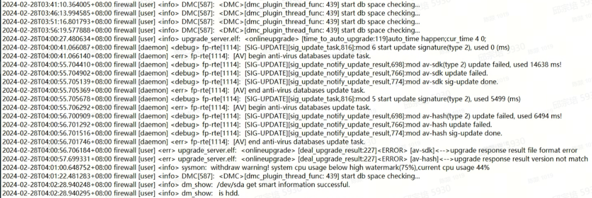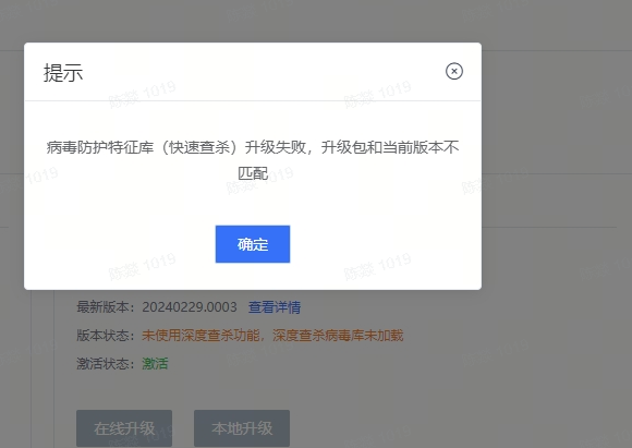 使用Z3200作为内网安全防护设备,配置病毒防护等功能,在WEB界面进行授权更新时,更新病毒库版本失败,提示“版本不匹配”,现场安全要求较高,病毒库未及时更新,导致无法及时进行病毒拦截更新和防护,增加内网业务运行的风险。