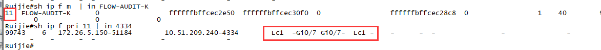 sh ip f m | in FLOW-AUDIT-K ---show出来后,查看第一列的数值