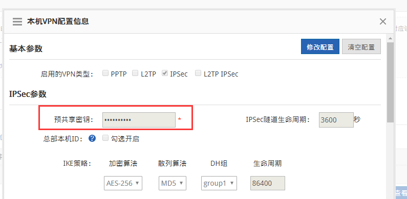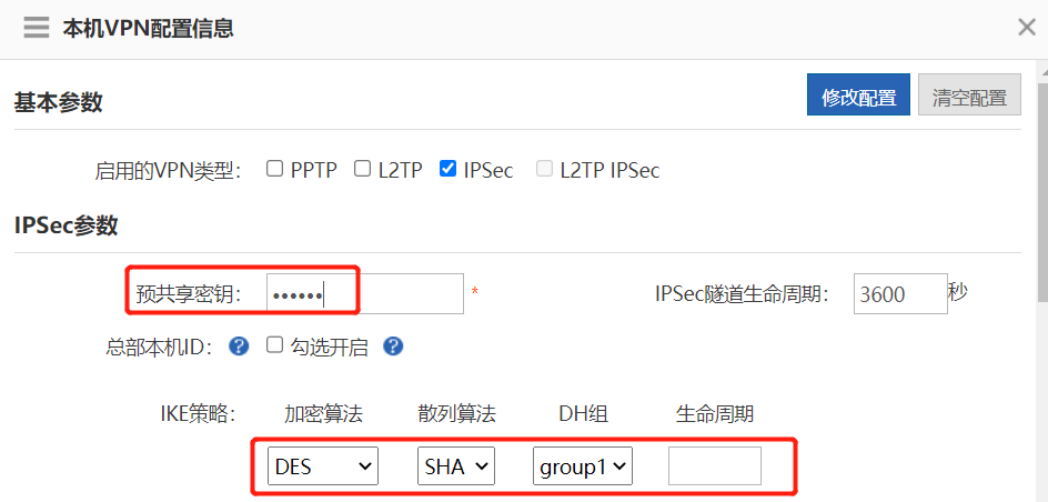 确认预共享秘钥、第一阶协商参数、第二阶段协商参数、感兴趣流等是否一致