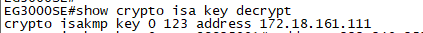 11.x的设备可以查看当前配置的预共享密钥是多少,通过命令show crypto isa key decrypt