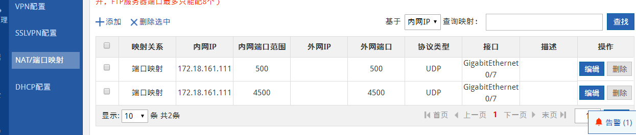 步骤9、总部为二级路由的情况下出口设备没有配置映射