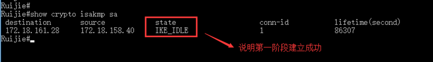 show crypto is sa 查看第一阶段建立的情况,IDLE状态表示是建立正常的状态