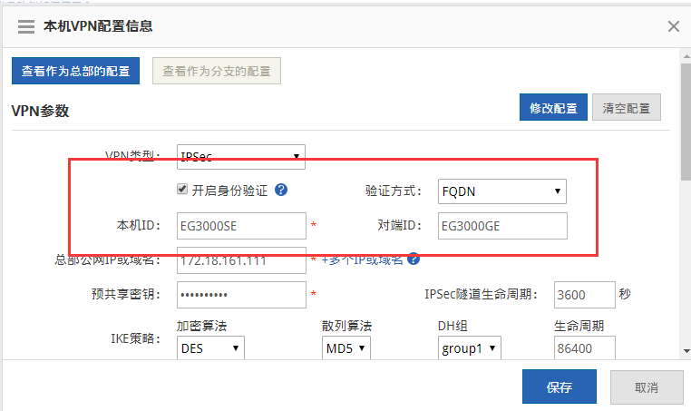 分支FQDN对应的命令行配置为:self-identity fqdn EG3000GE