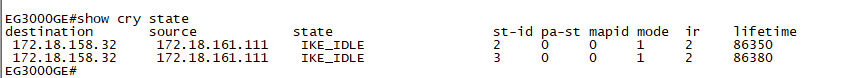 b、命令行可以通过show crypto state查看VPN第一阶段的情况