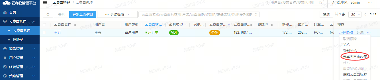 云桌面日志如下图收集: