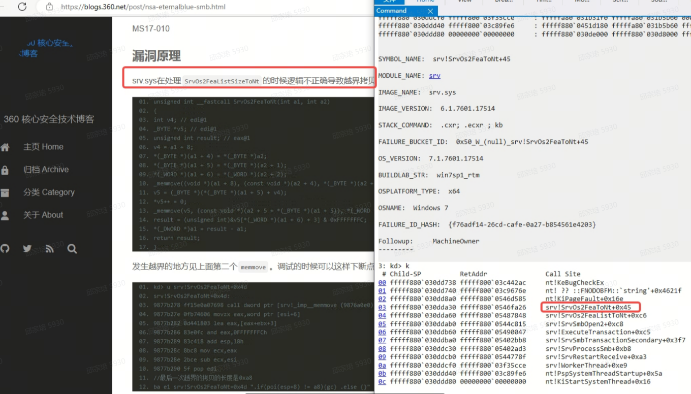 如下图情况:如果蓝屏dmp文件解析引起蓝屏进程是函数srv!SrvOs2FeaToNt报错,则很可能系统中毒引发重启。