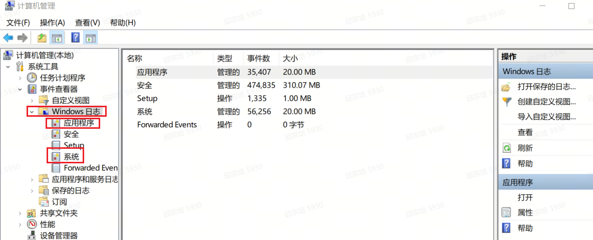 路径:我的电脑--》管理--》windows日志