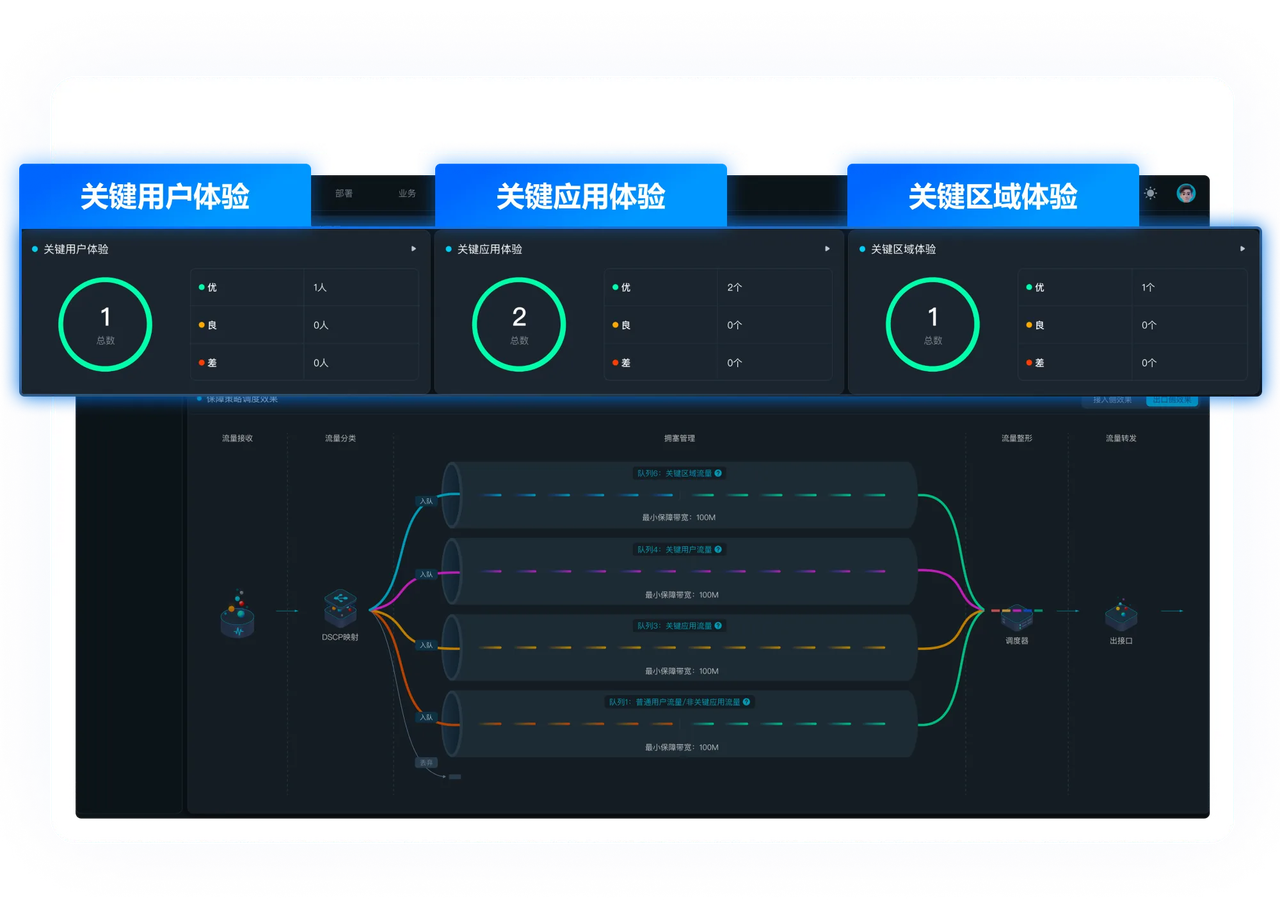 支持通过IP、MAC或账号形式,将关键终端、重要业务应用、重点区域等定义为“关键对象”,实现网络资源的优先调度,从事后补救变为事先保障。