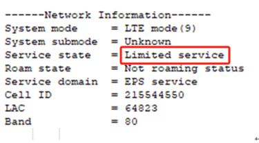 根据对现场设备信息收集,在show cell info中观察到network的信息中显示服务受限,如下图所示