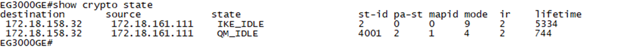 b、命令行可以通过show crypto state查看VPN第一阶段的情况